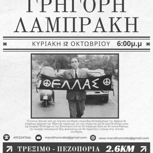 Την αθλητική εταιρία New ballance, τη ταβέρνα Ακρωτήρι, την ταβέρνα Καρνάγιο, την creta bites, freshsnack,τις Μινωικές Γραμμές το βιβλιοπωλείο Ανθολόγιο, νερό Σελινάρι τα Σ/Μ Χαλκιαδάκης ,την choco max croissant το ισοτονικό OSHEE, τον Σύλλογο δρομέων Ρεθύμνου και τον Ιωάννη Βραβορίτη