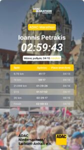 ο αθλητής του Συλλόγου Μαραθωνοδρόμων Κρήτης Ίκαρος Πετράκης Ιωάννης , ένας ανερχόμενος υποσχόμενος αθλητής αποστάσεων έτρεξε στον Μαραθώνιο στην πόλη Ανόβερο στην Γερμανία την Κυριακή 12 Απριλίου και πέτυχε τον εξαίρετο χρόνο 2ώρες 59’46 πετυχαίνοντας τον στόχο του.